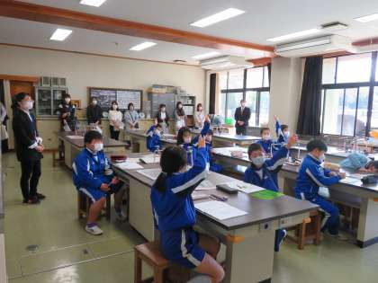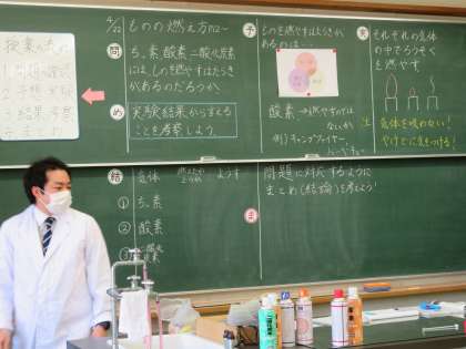 6年生は,理科の「ものの燃え方」の実験です。窒素・酸素・二酸化炭素にものを燃やす働きがあるのかを確かめました。班ごとに,役割分担をして実験を進めたり,タブレットを活用してろうそくの火の様子を撮影したり,協力し合って学習を進めていました。普段使うことが少ないマッチの扱いもだいぶ上手になってきました。