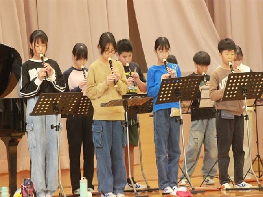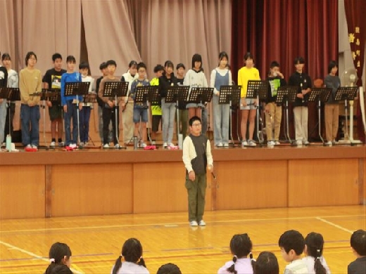 6年生が1年生のために、音楽の授業で学習した成果を発表しました。さすがは6年生と感じさせる素晴らしい演奏でした。鑑賞した1年生からは「音がきれい」「上手」というような感想がありました。また「いろいろな音があった」「ピアノに合わせていた」というような、合奏ならではの特徴への気付きもありました。