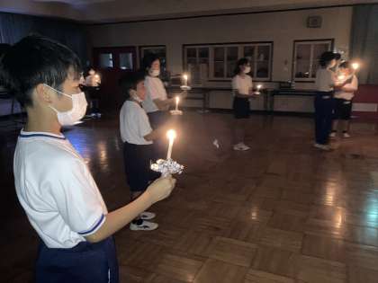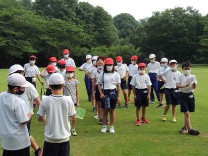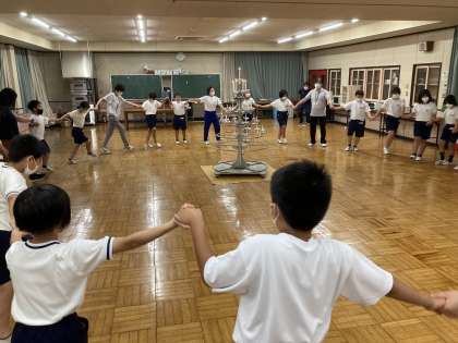 宿泊学習2日目の朝、「みどりの広場」で朝の集いを行いました。