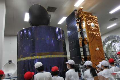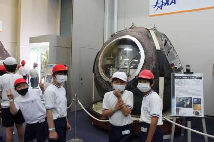 宿泊学習1日目、JAXA(宇宙航空研究開発機構)を見学しました。