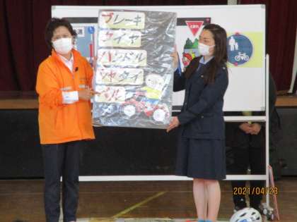 2時間目は、体育館でスライドを見ながら、安全な自転車の乗り方について学習しました。みんな一生懸命話を聞くことができました。
