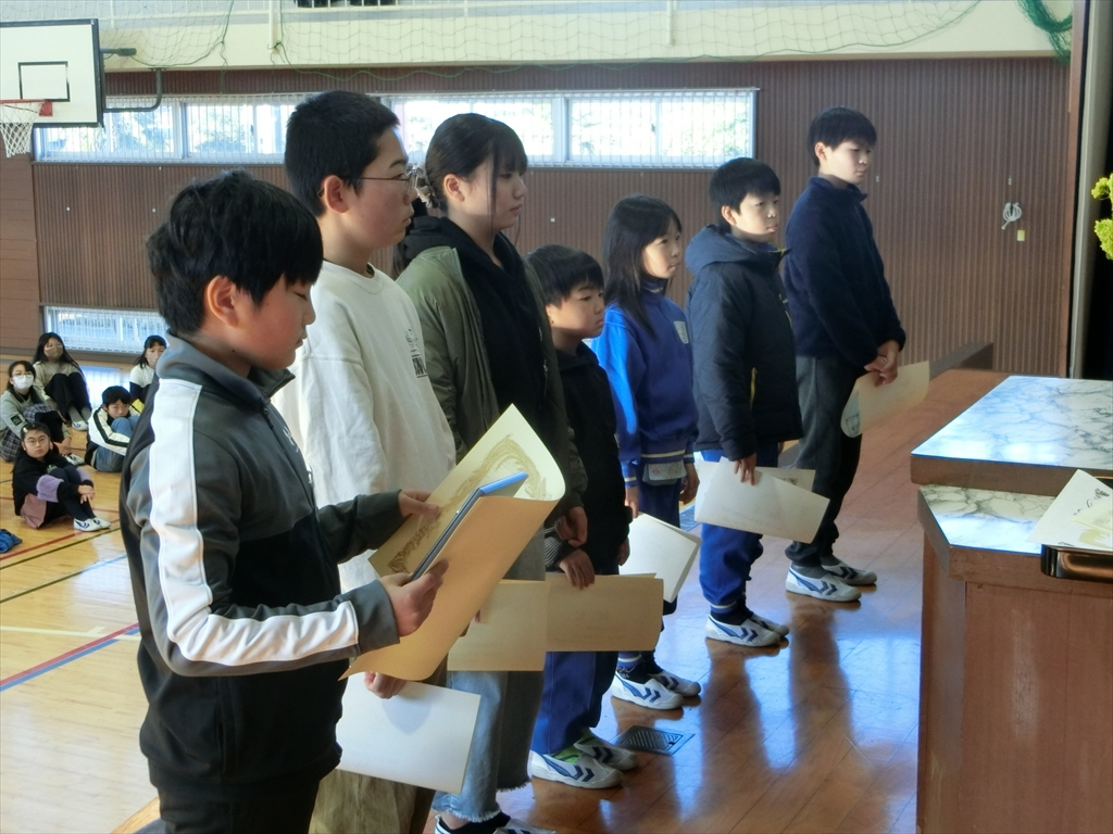 表彰式では、2学期の間に頑張って取り組んできたことを表彰された児童がたくさんいました。代表児童も立派な態度で賞状を受け取っていました。