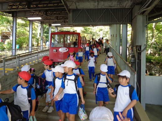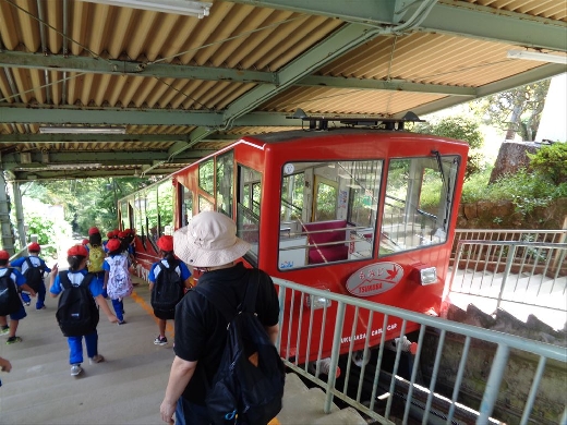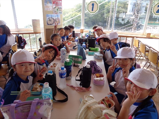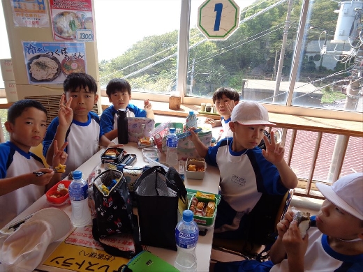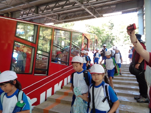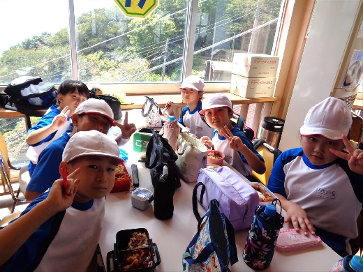 遠足の後半では、待ちに待ったお弁当&お土産の時間です!頑張って登山した後のお弁当は、とても美味しかったようです。コマ展望台で好きなお土産も買えて、子供たちはとても満足した様子でした。帰りはケーブルカーに乗り、筑波山全体の景色を楽しみました。今回の遠足での経験を生かし、さらに学校生活を充実したものにしていけるように支援していきたいと思います。保護者の皆様には、朝早くからのご準備ありがとうございました。