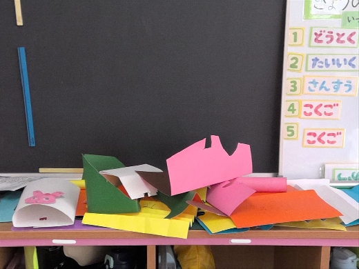 中には、出来上がった作品で休み時間にも遊んでいる子もいました。