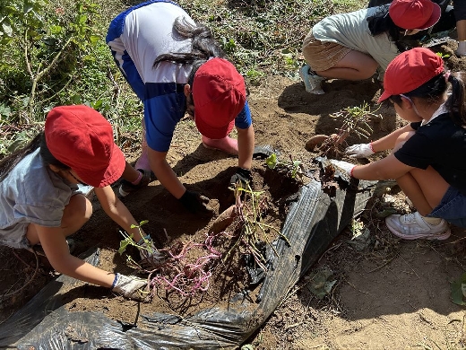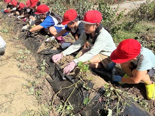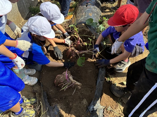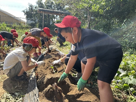 10月8日(水)に、1年生と2年生でサツマイモ掘りを体験しました。