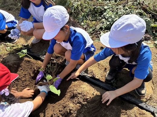JAの方々のおかげで、子どもたちは安全に、そして楽しく収穫の喜びを味わうことができました。この体験を通して、土や自然の恵みに感謝する気持ち、そして食べ物の大切さを学ぶことができたと思います。