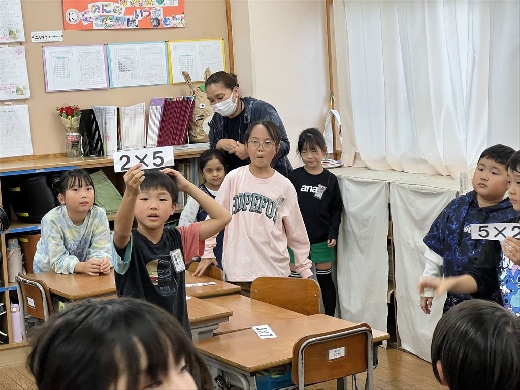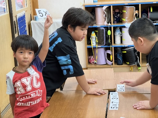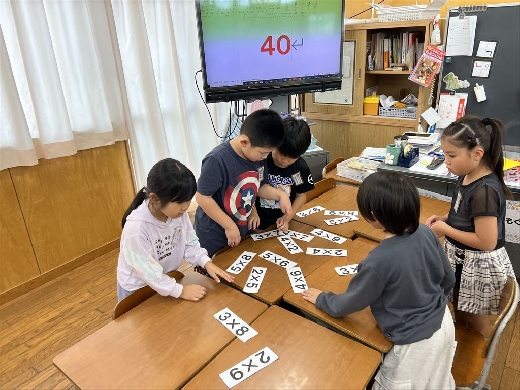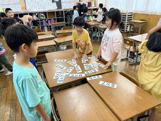 算数では、「かけ算」を頑張りました。答えの数字になる九九カードをかるたのように楽しみました。