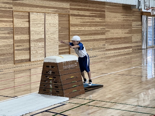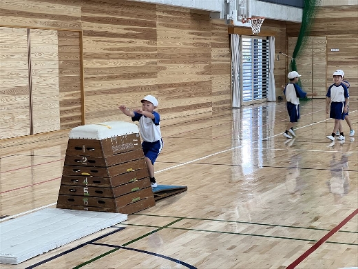 体育は、「とびばこあそび」が始まりました。ポイントをよく聞いて、目標を立てながら運動しています!