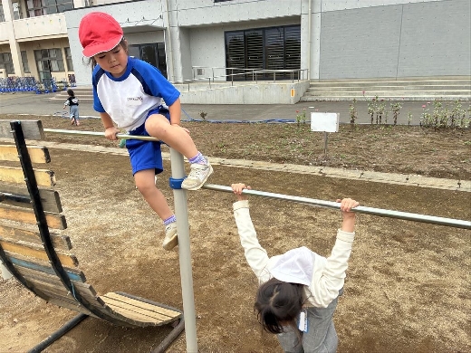 体育でやった鉄棒に、休み時間にも挑戦する姿も見られました。