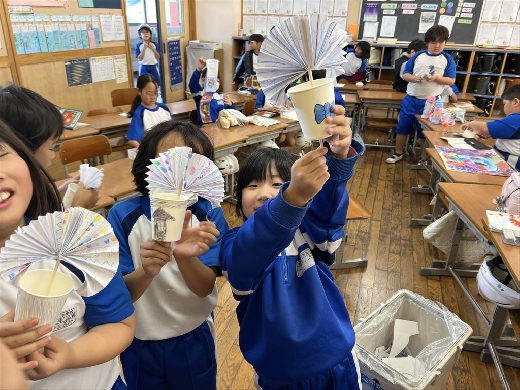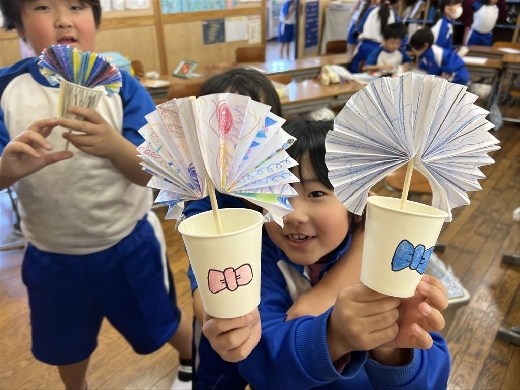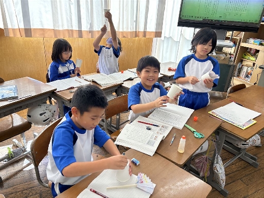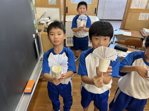 今週の2年生からは、国語「紙コップ花火の作り方」の様子と「ふたばっこタイム」の様子をお届けします。