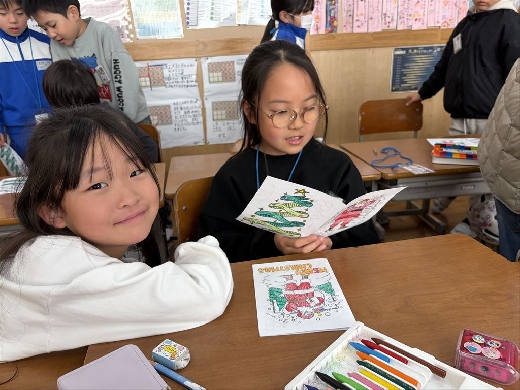 外国語活動では、クリスマスカードを作って、友達と交換したり、お家の人へのプレゼントにしたりと色々なカードがみられました!♪