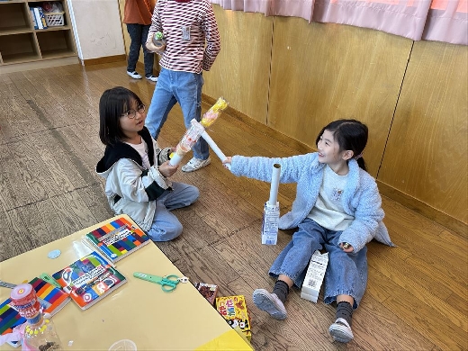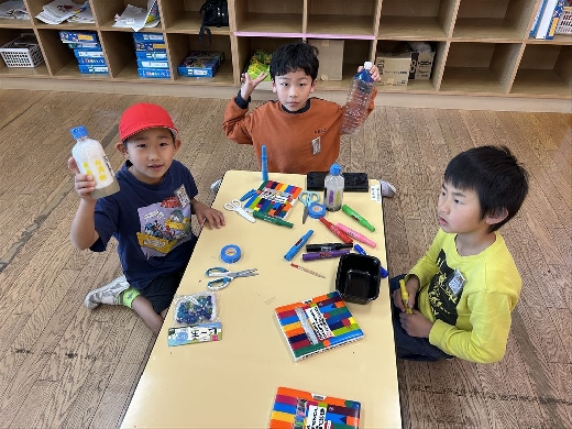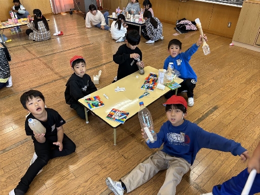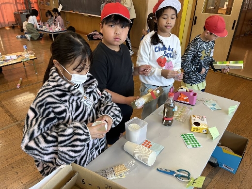 図工では、容器に砂や水を入れて、オリジナルの音づくりに挑戦しました!😊