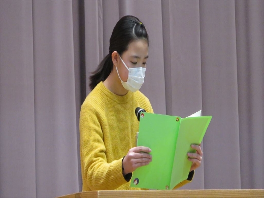 式の中では、2学期に頑張ったことや、3学期に向けた意気込みなど、代表による作文の発表が行われました。