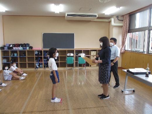 9月7日にオンラインで表彰式を行いました。ミニバスケットボールの大会と全国こども陶芸展の表彰です。ミニバスケットボールの児童は、古河市長杯で第3位に輝きました。5年生の児童が、陶芸展で文部科学大臣賞を受賞しました。日頃から練習したり製作したりすることに熱心に取り組んでいる成果です。おめでとうございました。