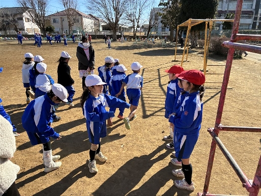 1年生がクラス遊びの時間に、元気に校庭で活動しました。1組は「だるまさんがころんだ」と「色鬼」を、2組は「増やしおにごっこ」と「色鬼」を行い、それぞれお気に入りの遊びに夢中になって取り組みました。ルールを守りながら友達と仲良く体を動かし、冬の寒さを忘れるほど楽しいひとときとなりました。