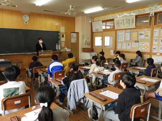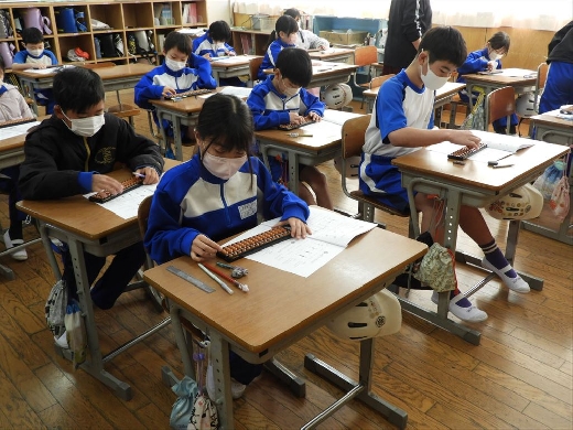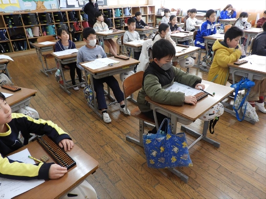 2月10日と12日の算数の授業で3年生を対象に、塚原そろばん教室から塚原信代先生をお迎えし、そろばん教室を開いていただきました。そろばんの歴史、部分の名称や仕組み、足し算や引き算などの計算を楽しく行うことができました。子供たちは実際にそろばんを使って計算して、「どうしてできるの?」「すぐに計算できてすごい!」などといった話が聞こえており、とても充実した時間となりました。