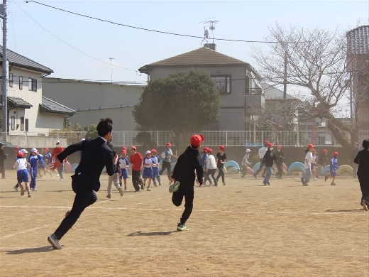 先生たちが「ハンター」となり、全校児童が校庭いっぱいに逃げ回るという、活気あふれる時間となりました。追いかける側も逃げる側も一生懸命で、校長先生からの「本気で遊ぶと楽しいんだね」という言葉通り、全力で取り組むからこそ味わえる楽しさを、子どもたちは存分に感じ取っていたようです。