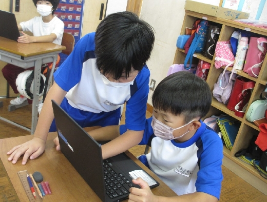 10月18日2校時に、3年生の学級活動がありました。内容は、学級の係活動で、メディア・IⅭTを担当する係(学級では会社「蒼風竜」)によるプログラミン研修会の開催です。プログラミングで、ゲームを作成する内容でした。児童が企画運営をした素晴らしい研修会となりました。