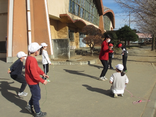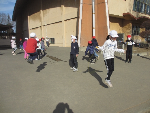 昼休みの様子です。子供たちは、元気に外遊びをしています。なわとびやドッジボール、サッカー等楽しく遊んでいます。