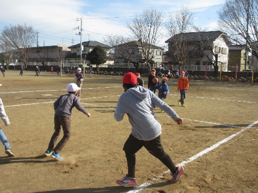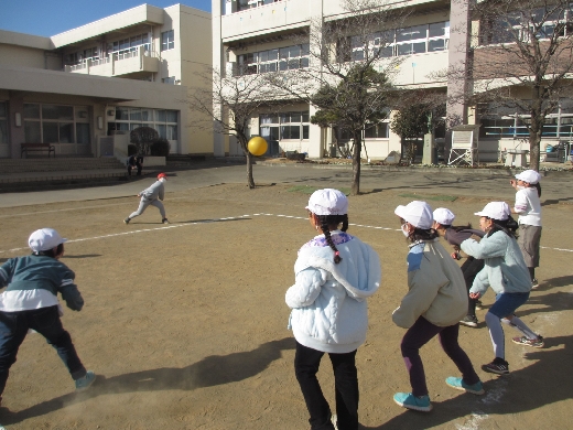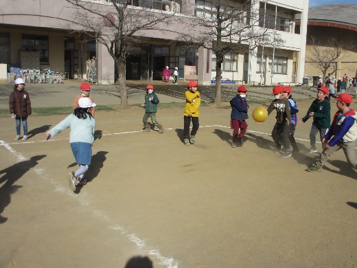 昼休みの様子です。子供たちは元気に外遊びをしています。なわとびやドッジボール、サッカー、遊具等で楽しく遊んでいます。