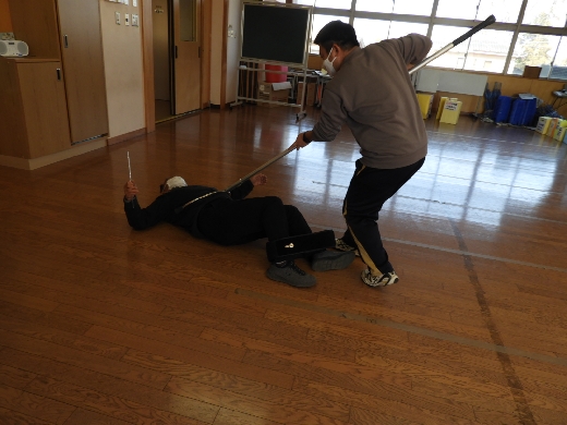 本日、不審者対応の避難訓練を行いました。振り返りでは、養護教諭の先生から不審者対応のポイントをお話ししました。また、日頃から各教室に掲示してある「危機対応マニュアル」をよく読んで、様々な危機に対する備えをすることの大切さをお話ししました。学校にある不審者に対応する「さすまた」等の道具についてお話ししました。実演もあり、避難訓練が心に残るものになったと思います。