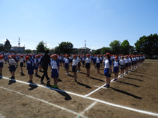 運動会の全体練習を行いました。代表委員会の委員長をはじめとする児童による運動会練習についてのお話や内容についてのお話がありました。成功に向けて、みんなで力を合わせて取り組んでいく気持ちが伝わりました。初めての全体練習ですが、とてもよくできました。