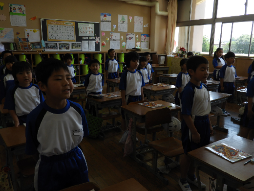 1年生の音楽の授業の様子です。素晴らしい歌声が聞こえてきました。積極的に授業に取り組み、校歌も上手に歌えるようになりました。