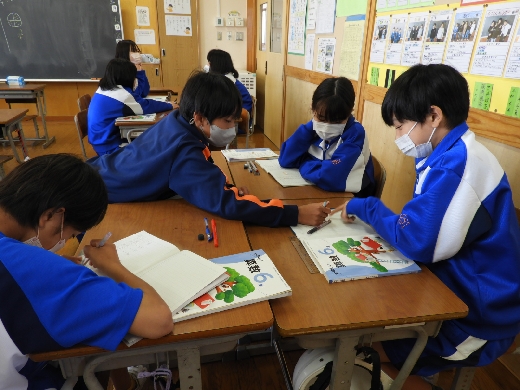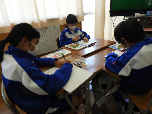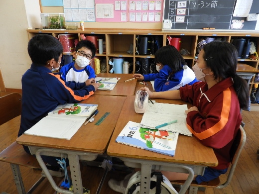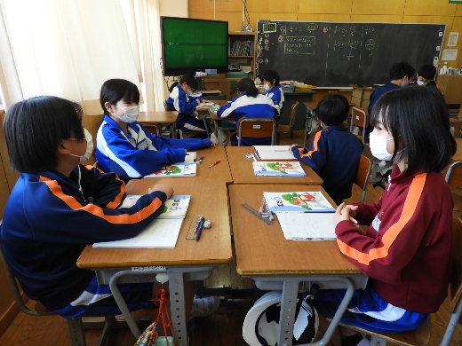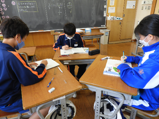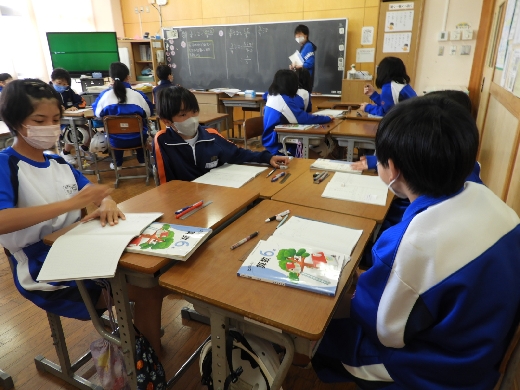 6年生の算数の授業の様子です。分数のわり算について、しっかりと考え伝え合うことで理解を深めることができました。また、自分の考えをわかりやすく説明したり、生活の中の物におきかえて分数のわり算を考えたりして学習に取り組むことができました。