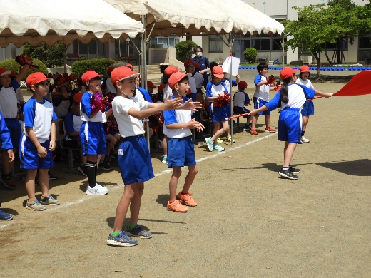 運動会予行の係活動の様子です。高学年児童による係活動によって、運動会を行うことができます。自分の係活動に責任をもち進んで取り組んでいる姿が、輝いていました。