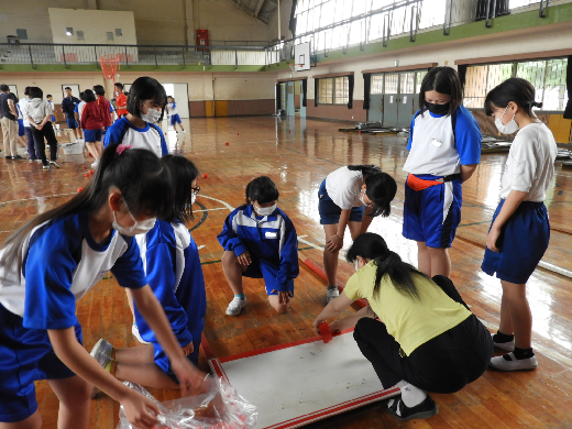 運動会の準備を行いました。体育館では、放送のリハーサルや得点板の準備などをはじめ、各係で準備をしました。5,6年生の自主的に取り組む姿が素晴らしいです。