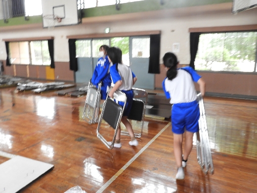 運動会の準備をしました。体育館では、放送のリハーサルをしたり得点板の準備をしたりしました。5,6年生の自主的に取り組む姿が、たいへん素晴らしかったです。