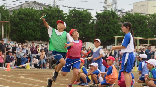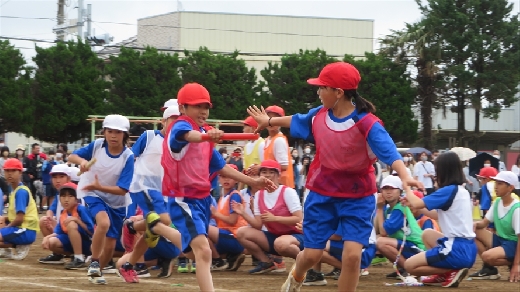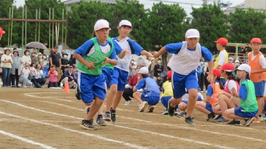 赤白対抗リレーの様子です。赤白それぞれ3チームずつ、全部で6チーム対抗のリレーです。6年生が1年生をコースに案内する姿などとても温かい心になりました。どのチームも頑張りました。その姿がとても素敵でした。みんな応援に夢中でした。素晴らしい声援が聞こえてきました。