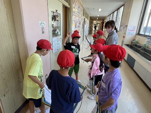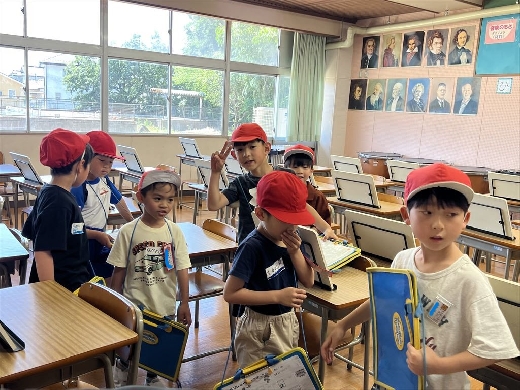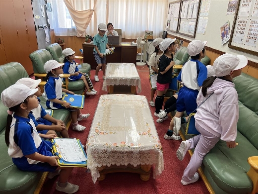 この日のために準備をしてきた2年生に連れられ、学校中の色々な教室を探検していきました。今まで入ったことがなかった家庭科室や図工室、ふかふかの校長室のソファーなど、1年生にとって沢山の発見がある、とても楽しい探検になりました。