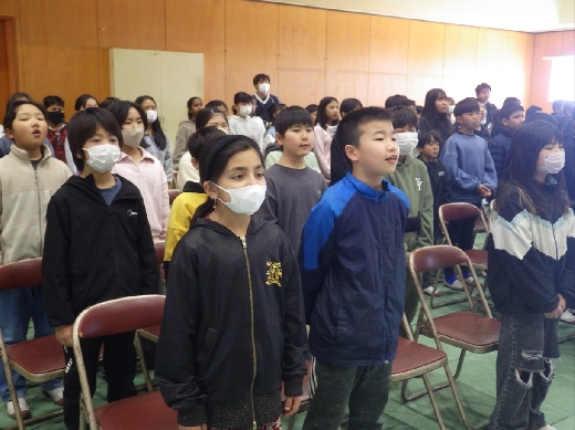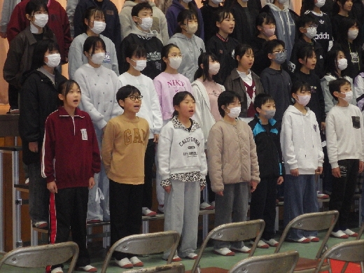 本日、卒業式の予行練習を実施しました。約1時間ほどの練習でしたが、卒業生だけでなく在校生代表の4,5年生もとても集中して式に臨んでいました。門出の言葉や歌も、本番に向けて一層気持ちが高まってきたようです。