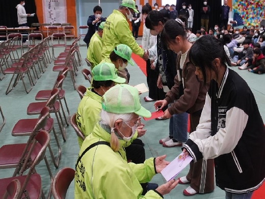 3月13日(金)の二小タイムにウォーキングパトロール隊への感謝の集いが行われました。毎日、児童の安全のため登下校を見守ってくださったウォーキングパトロール隊の皆さんに感謝の思いを伝え、手作りのキーホルダーをプレゼントしました。ありがとうございました。これからもよろしくお願いします。