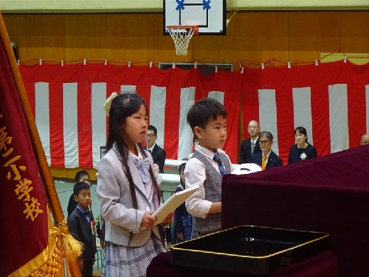 4月7日(火)に、66名の新入生が岩井第二小学校に入学しました。新入生は6年生と手をつないで入場し、担任の先生から名前を呼ばれ大きな声で返事をすることができました。式に臨む態度も大変立派でした。明日から一緒に楽しく生活しましょう!
