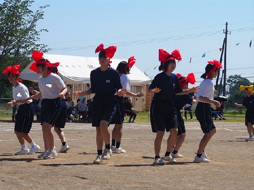 応援合戦紅組!頭にリボンを付けて、元気いっぱい踊りました!