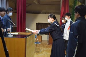 本日は第2学期終業式・表彰式および来年度の新生徒会任命式が行われました。皆さんの努力と成果を称え、新たな生徒会メンバーのリーダーシップのもと、次年度も充実した学校生活を期待しています。