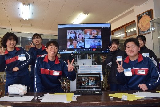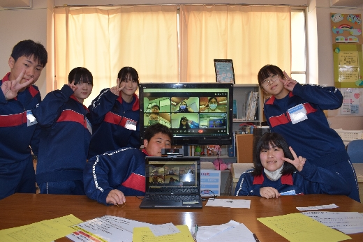 3月11日(水)の英語の授業で台湾とのオンライン交流を行いました。5グループに分かれて、本校生徒が司会進行を務め、15分×2回の交流をしました。交流した生徒は台湾の台北市の中学1年生の生徒です。