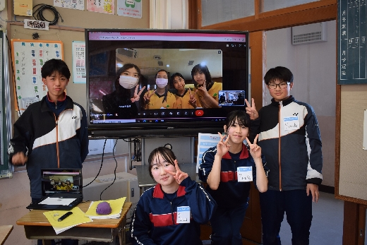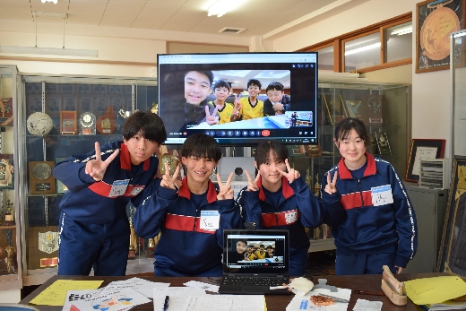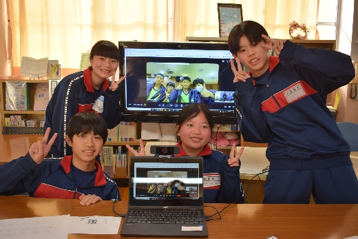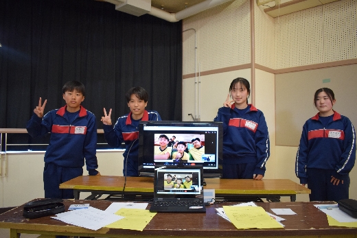 3月12日(木)の2年1組の英語の授業で台湾とのオンライン交流を行いました。