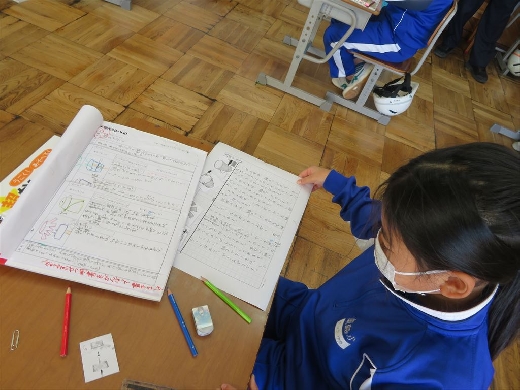 今日は、説明書の下書きを行っていました。「作るおもちゃの写真や絵を正しい順序に並べる」「順序を表す言葉を使う」「丁寧な言葉で書く」の3つのポイントを意識して書いていました。
