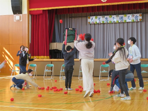 3年生は、6年生に「挑戦状」を渡し、「玉入れ」で勝負しました。