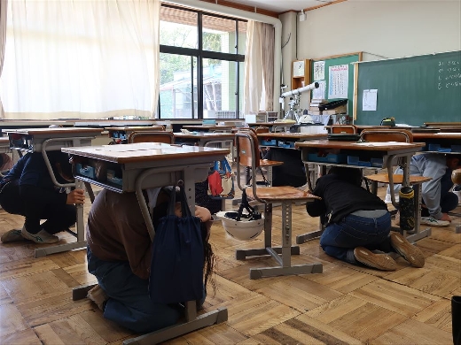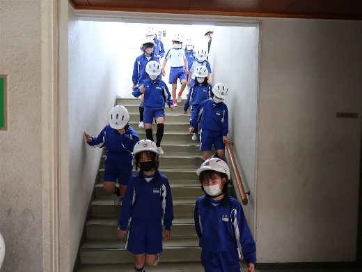 4月13日(木)に、地震を想定した避難訓練が行われました。避難経路を確認したり、いざという時に自分で自分の身を守る方法について考えたりしました。