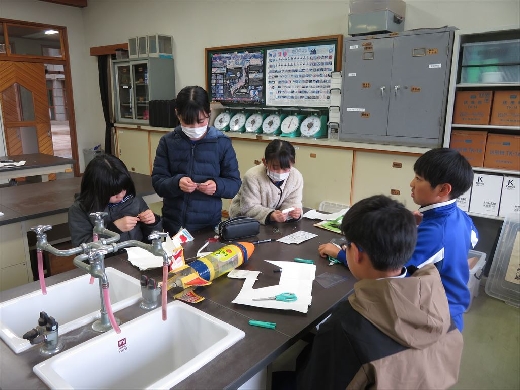 4年生では、木村元校長先生をゲストティーチャーにお招きし、ロケットづくりをしました。ペットボトルで作ったロケットを、空気の力を利用して飛ばします。理科で学習した内容をもとにロケットが飛ぶ仕組みを考えながら活動しました。また、6年生では、「ようこそ先輩」というタイトルで、中学1年生の先輩と交流し、中学校の学習や生活について教えていただきました。後半は、ドッジボールをして交流を深めました。また、神大実小学校の6年生と、オンラインで交流しました。学校紹介やクイズなどで交流を深めました。6年生では、卒業及び中学校への進学に向けて準備が進められています。