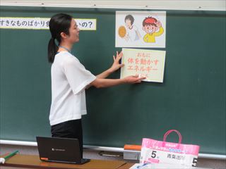3年生は「食に関する指導」を受けました。給食のメニューをもとに、「体をつくるもとになる食べ物」や「筋肉になる食べ物」など、食べ物の役割について学びました。栄養のバランスを意識することの大切さを知ることができ、これからの食事でも学んだことを活かしていきたいという声がたくさん聞かれました。