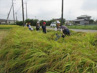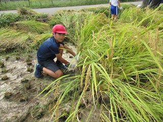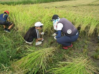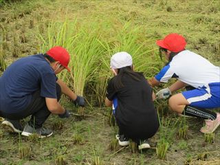 5年生は、春に自分たちで田植えをした稲の「稲刈り体験」を行いました。鎌を使って丁寧に刈り取る作業は大変でしたが、協力して一生懸命取り組みました。収穫したお米は、精米をしてアグリ山﨑さんに届けていただきました。自分たちの手で育てたお米を目の前にし、達成感とともに食のありがたさを改めて感じることができました。