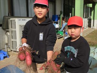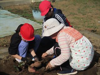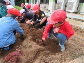 掘ったお芋はみんなで仲良く分けて、持ち帰りました。どの子も「楽しかった!」と笑顔いっぱいで、とても温かい時間となりました。
