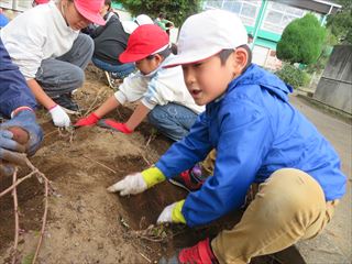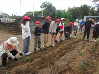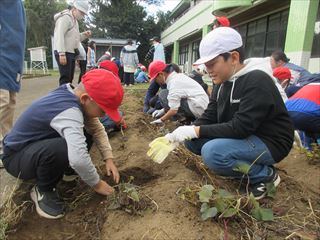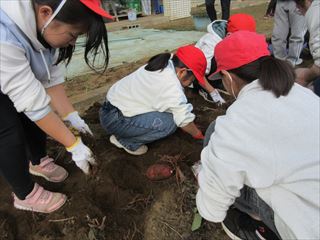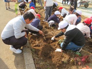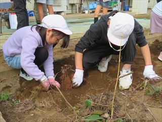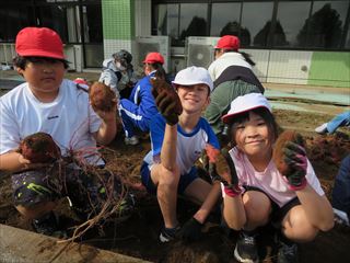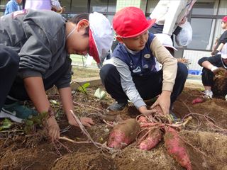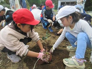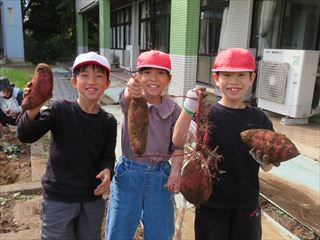 10月23日、学校でいもほり集会を行いました。今年も異学年どうしでペアを組み、声をかけ合いながら協力して芋を掘りました。土の中から大きなお芋が見えるたびに、子どもたちからは嬉しそうな声があがり、たくさんのお芋を収穫することができました。