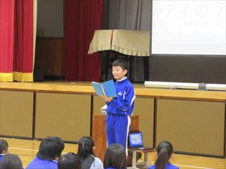 保健集会では、目の健康について学びました。保健委員会が中心となり、自分の目を大切にする気持ちを改めて学ぶことができ、日常生活で目を大切にするための工夫を考える機会となりました。