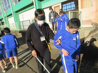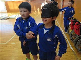 12月に、3年生が福祉体験学習を行いました。子どもたちは2人一組になって車いすを押したり、実際に車いすに乗ったりする体験を通して、移動の大変さを実感しました。また、白杖体験にも取り組み、視覚が不自由な方の立場に立って考えることができました。体験を通して、体が不自由な方が日常生活の中で感じている不便さや工夫について学ぶ、貴重な機会となりました。
